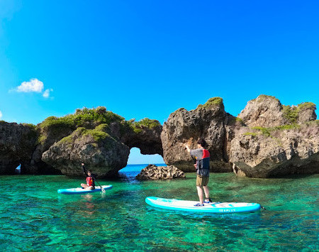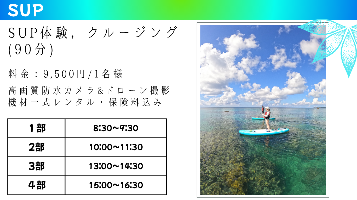 ・水難救助員、宮古島SUP協会公認インストラクターの資格を持つ2人のガイドがお供します。